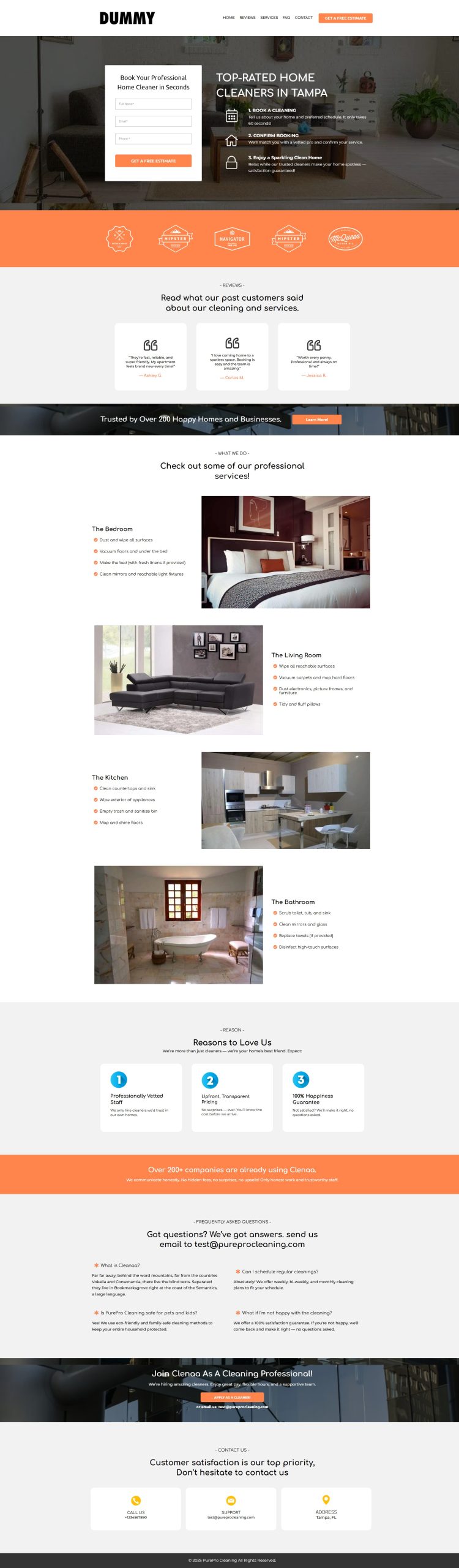 This high-converting cleaning service landing page is designed to inspire visitors and attract more bookings for professional cleaning companies.