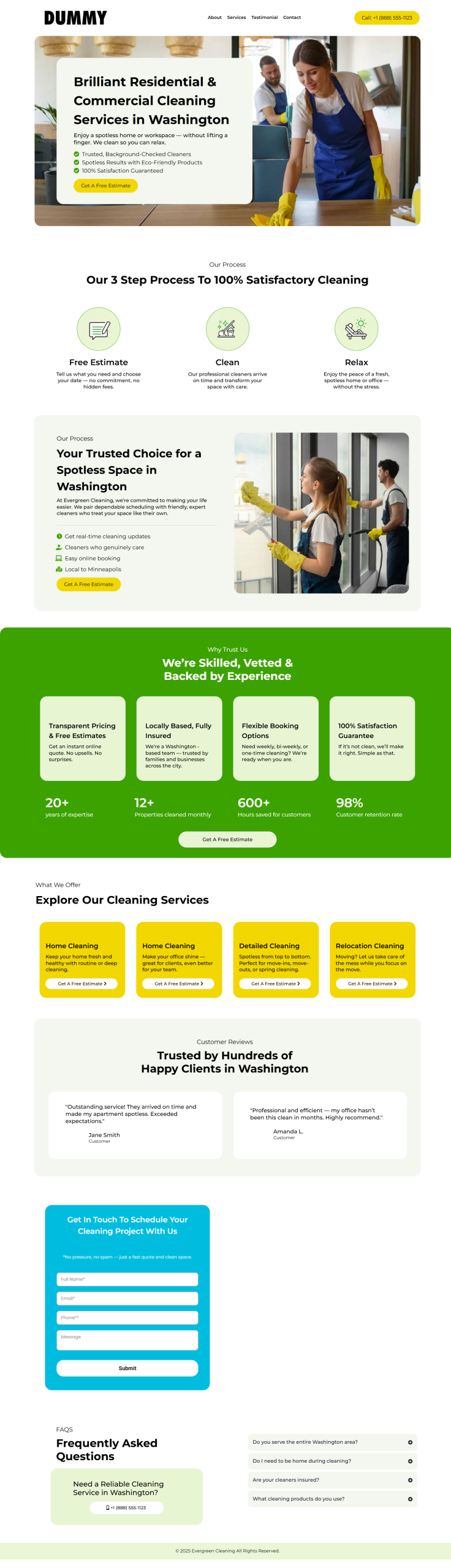 This high-converting cleaning service landing page is crafted to build trust and generate more client inquiries for professional home and commercial cleaning, recurring service plans, and expert sanitation solutions.