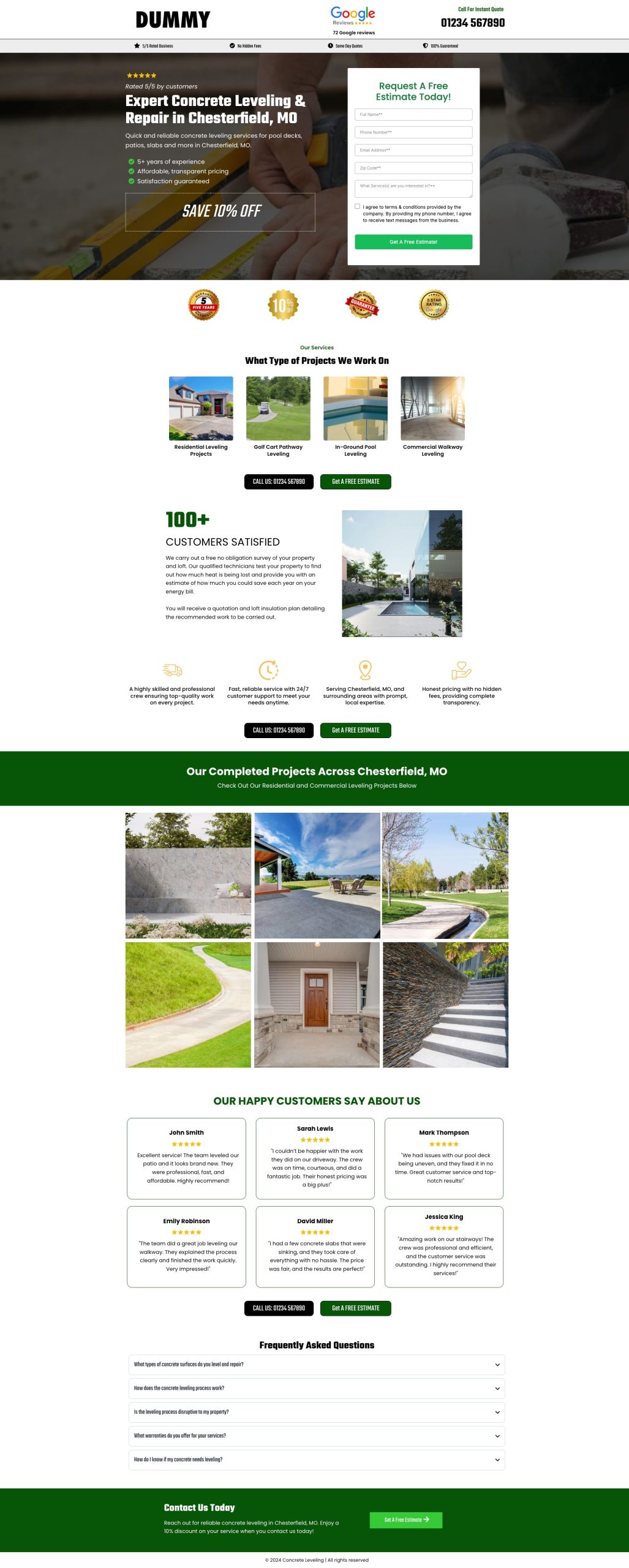 This high-converting Concrete Leveling landing page is expertly crafted to engage visitors, display services, and generate more for your business.