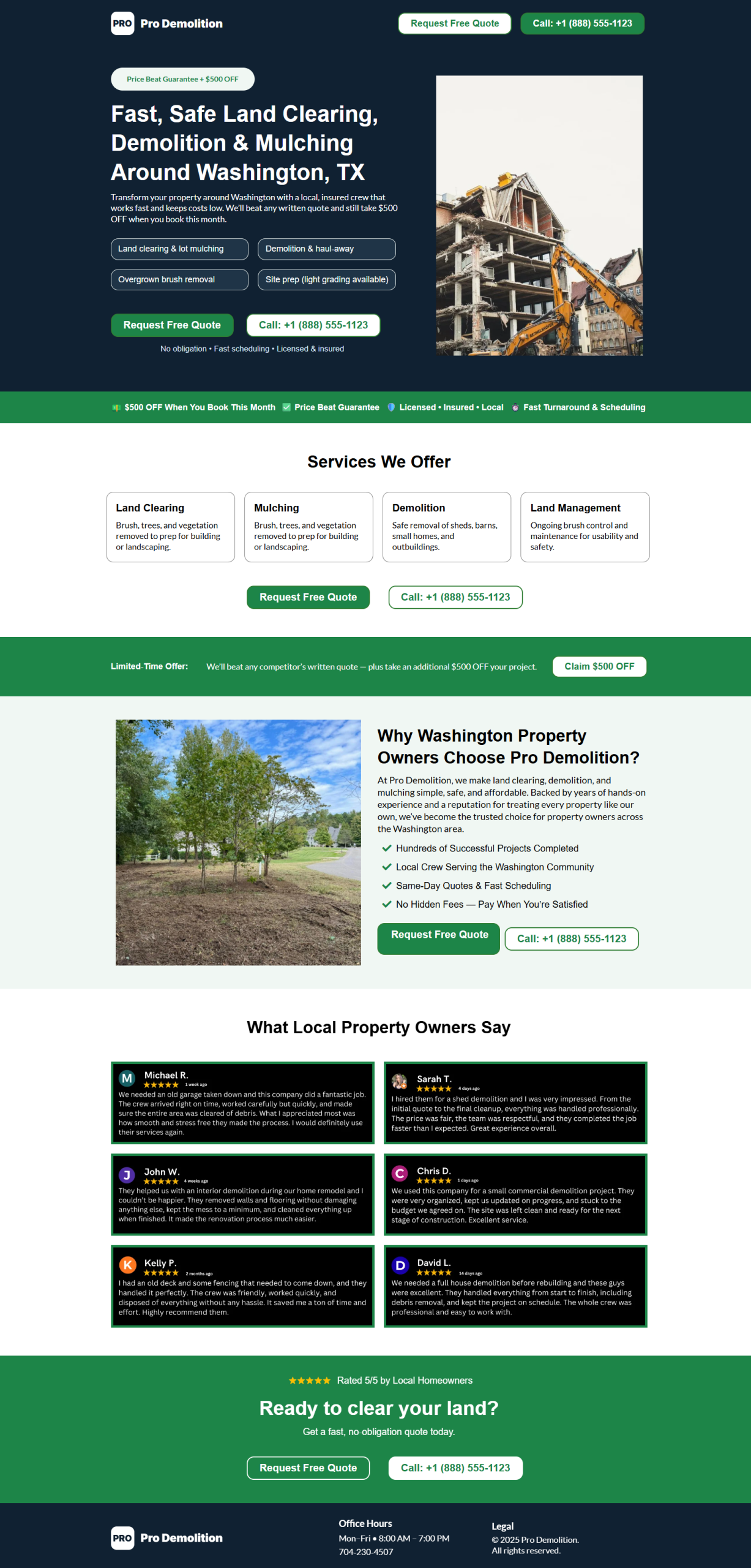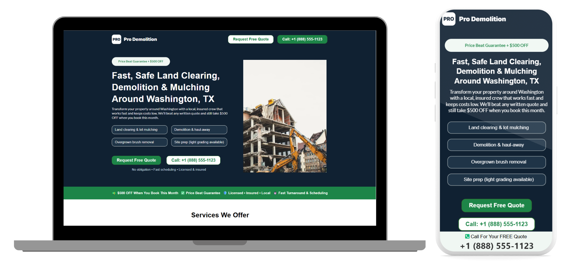 This high converting Demolition landing page is designed to attract visitors and generate more leads for your business.