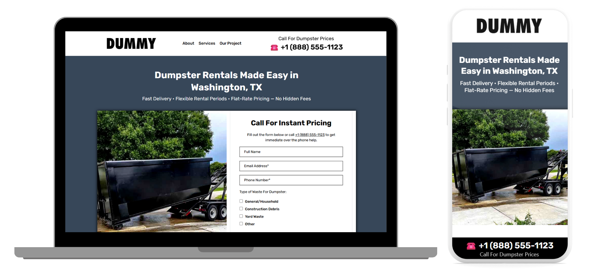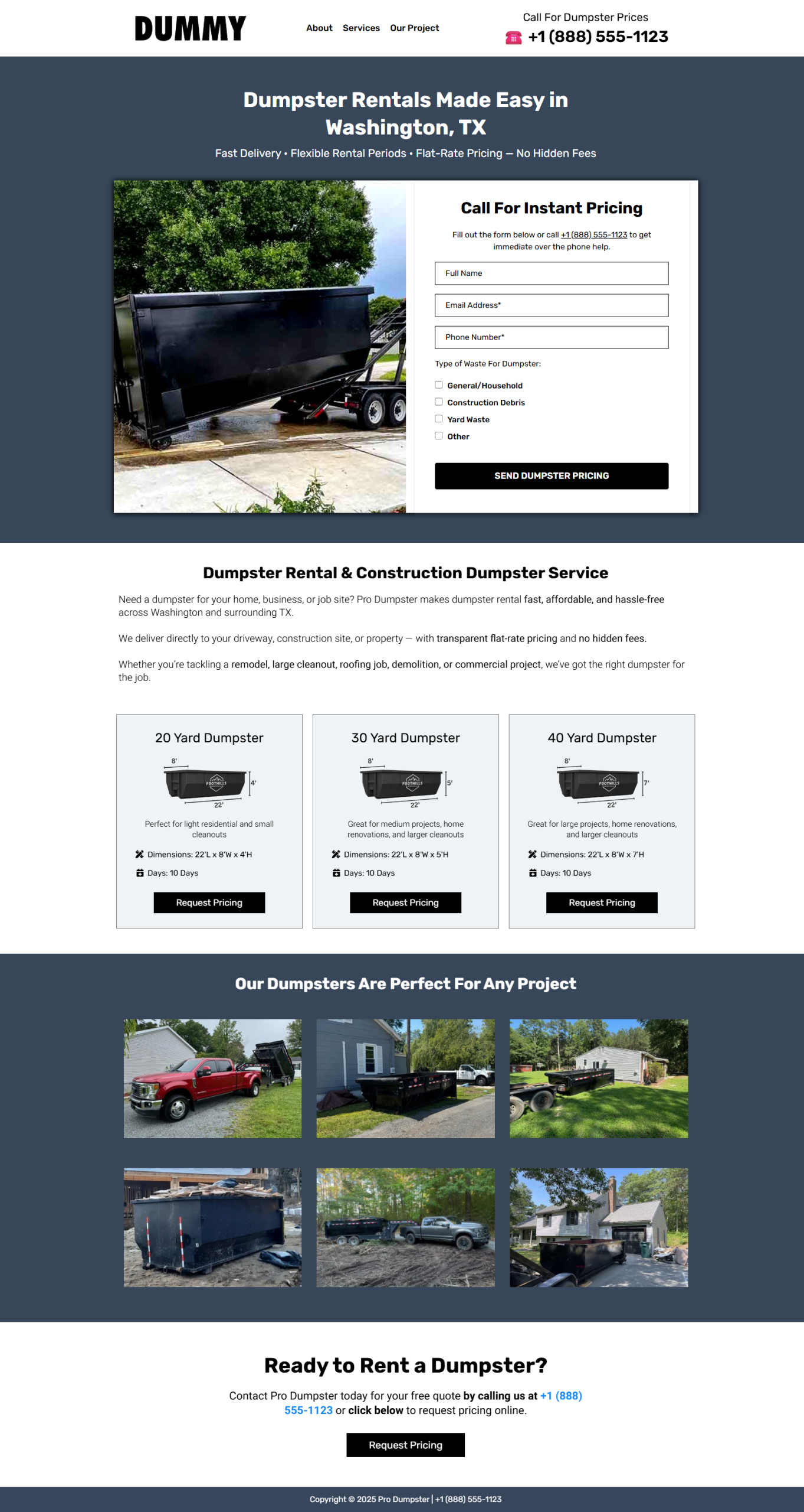 This high converting Dumpster Rental landing page is designed to attract visitors and generate more leads for your business.