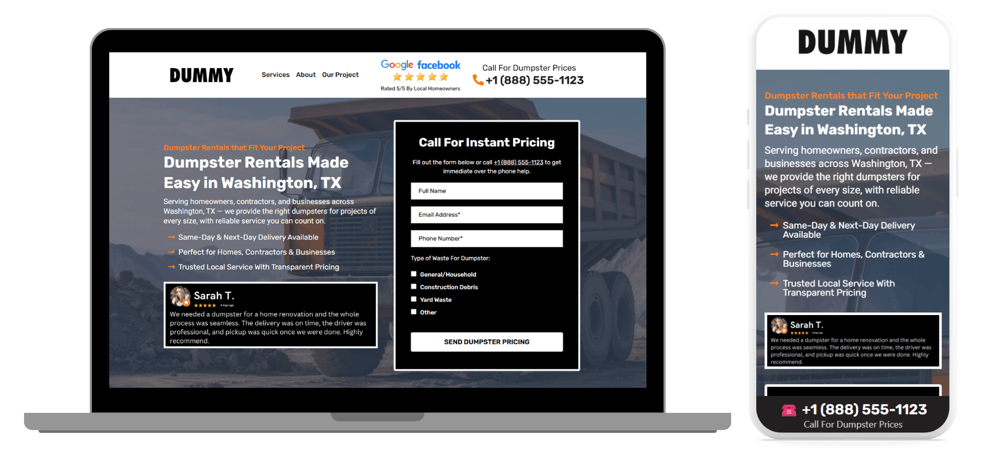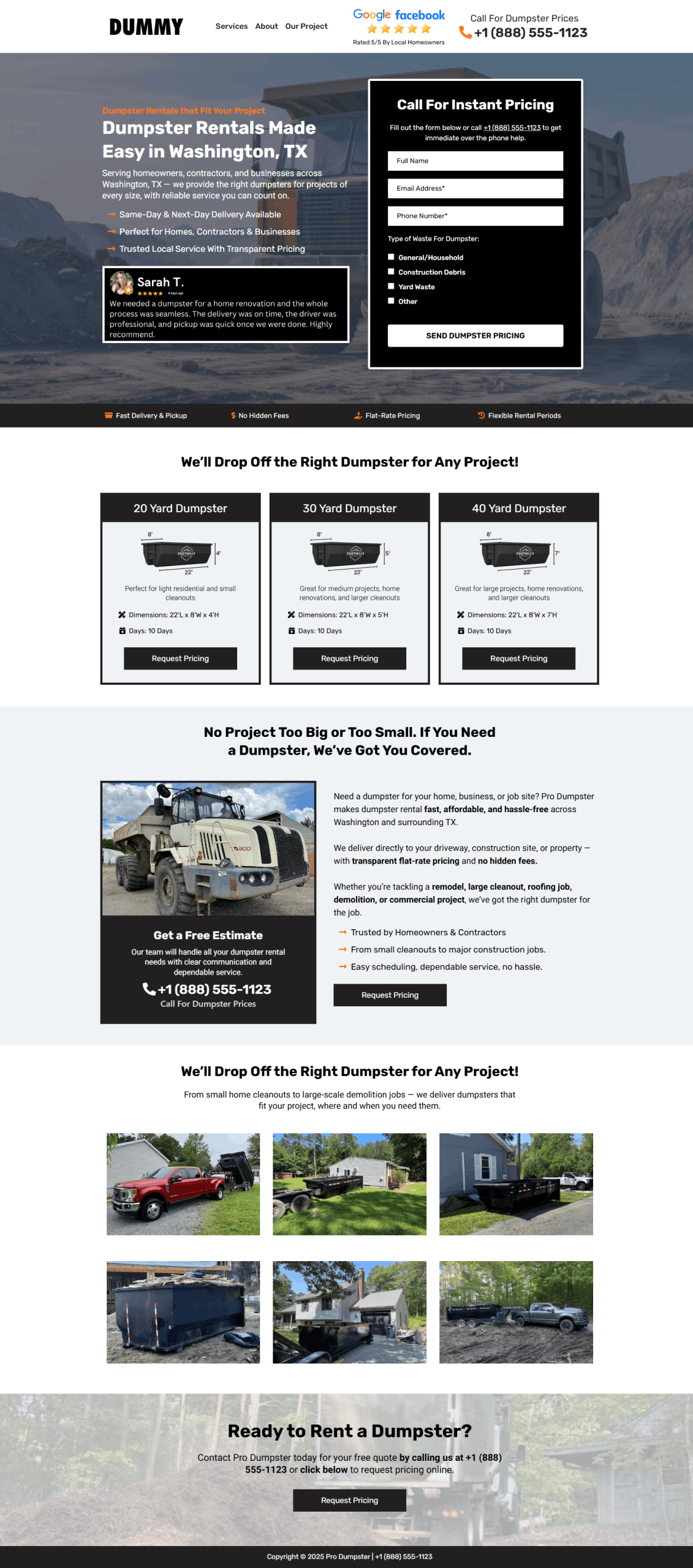 This high converting Dumpster Rental landing page is designed to attract visitors and generate more leads for your business.