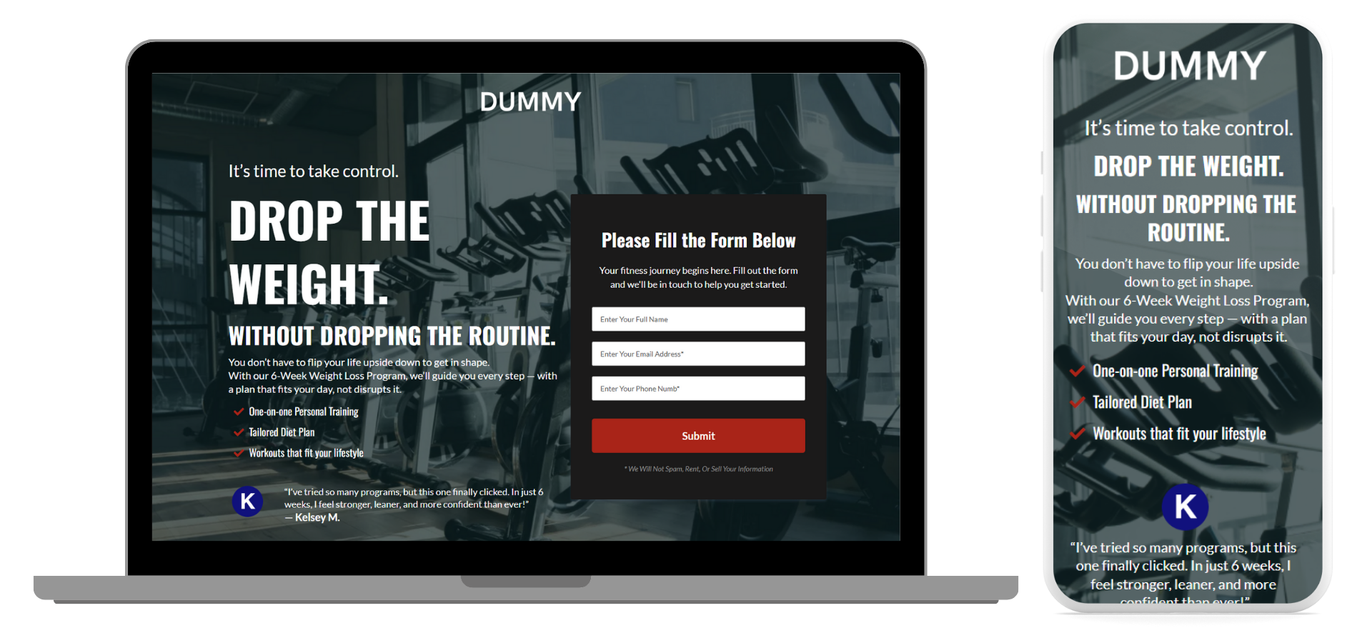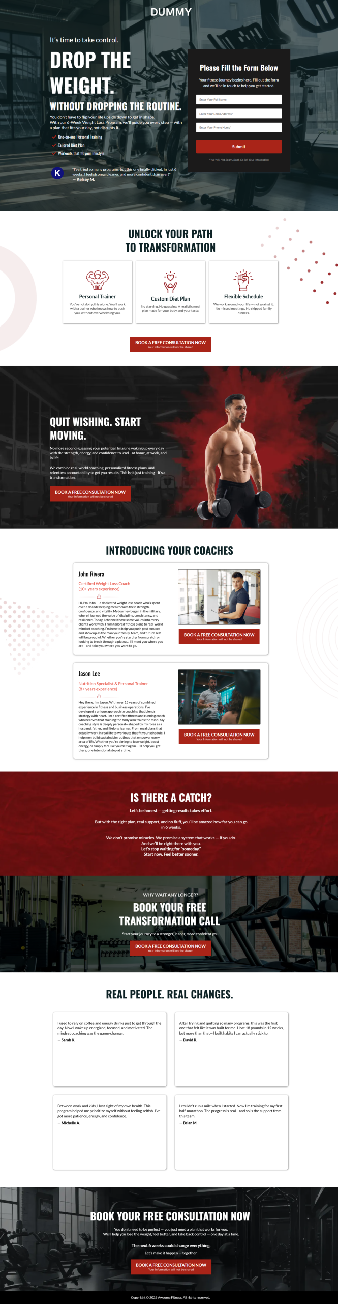 This high-converting fitness landing page is designed to motivate visitors and drive more sign-ups for gyms, personal training, and wellness programmes.