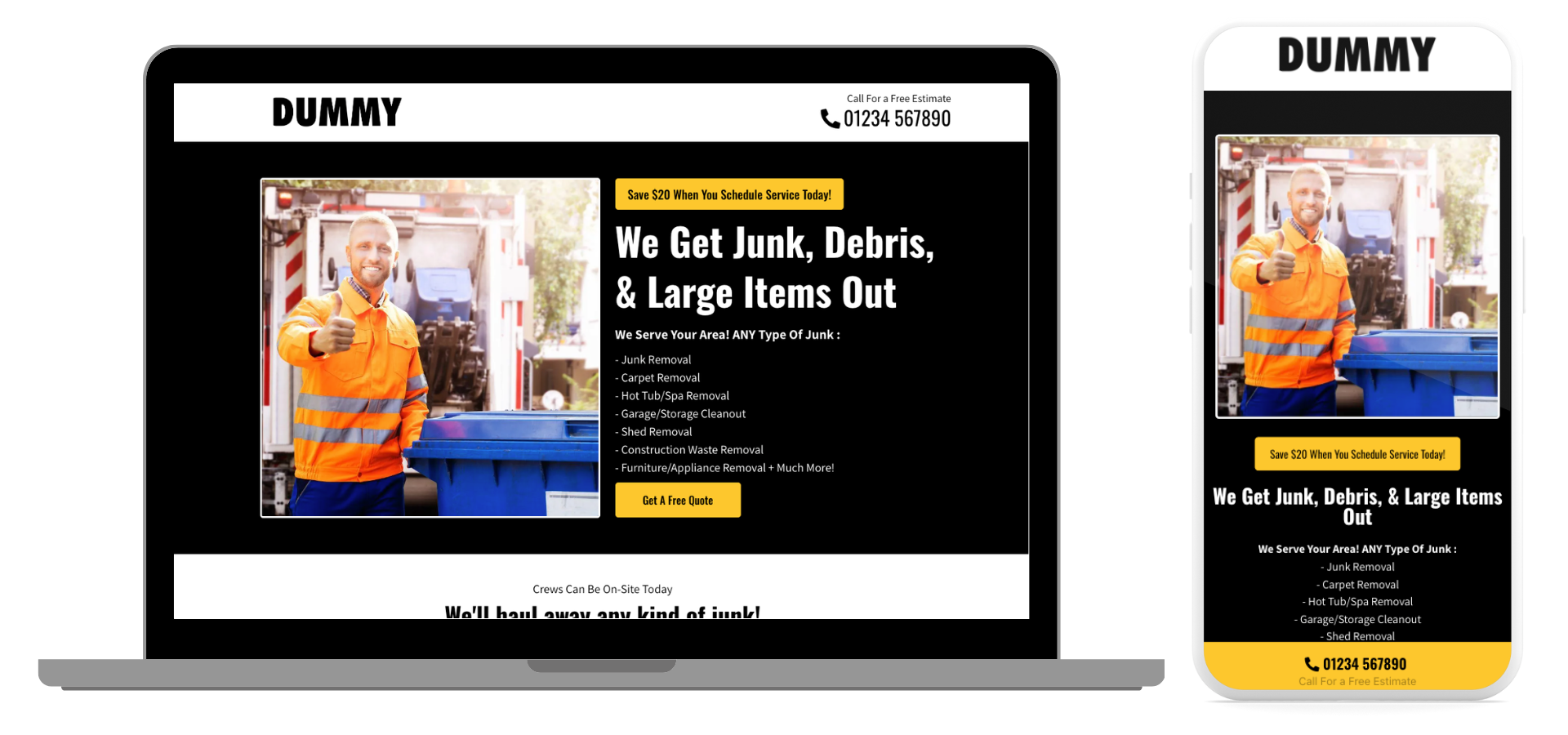 With a focus on engagement, this high-converting Junk Removal landing page makes it easy for visitors to understand your services and take action.