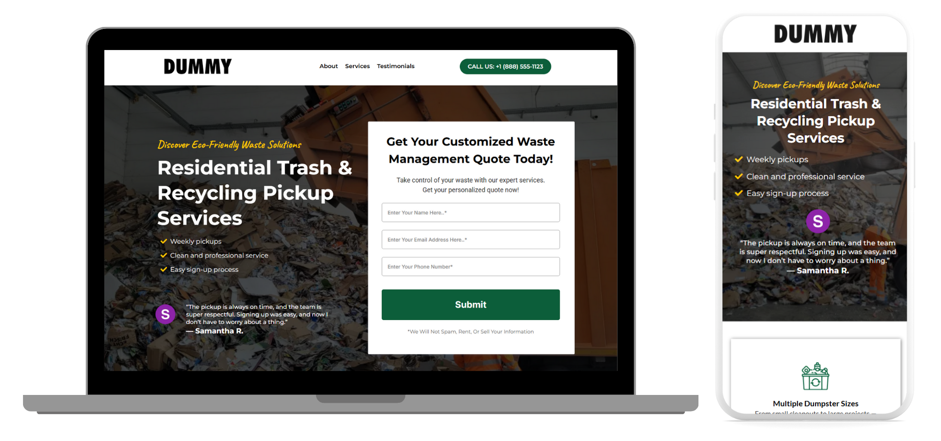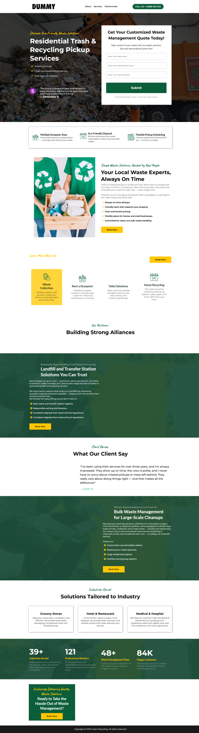 This high-converting recycling landing page is designed to engage visitors and generate more collection requests for eco-conscious waste management and recycling services.