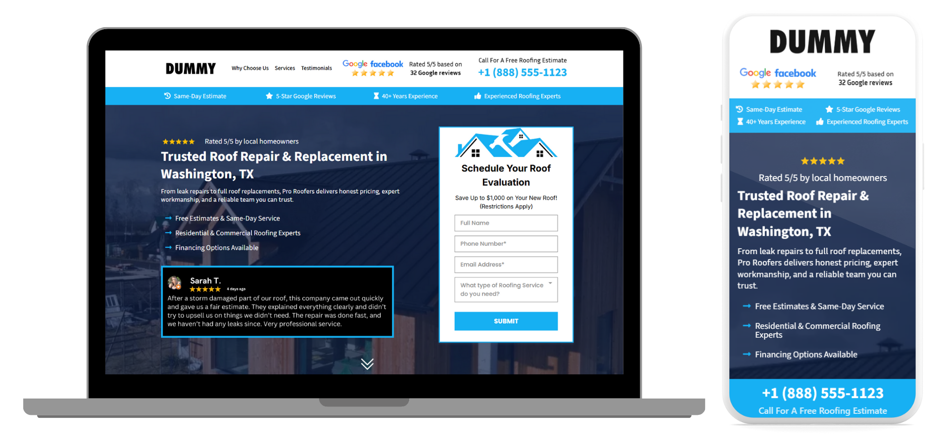 This high converting Roofing landing page is designed to attract visitors and generate more leads for your business.