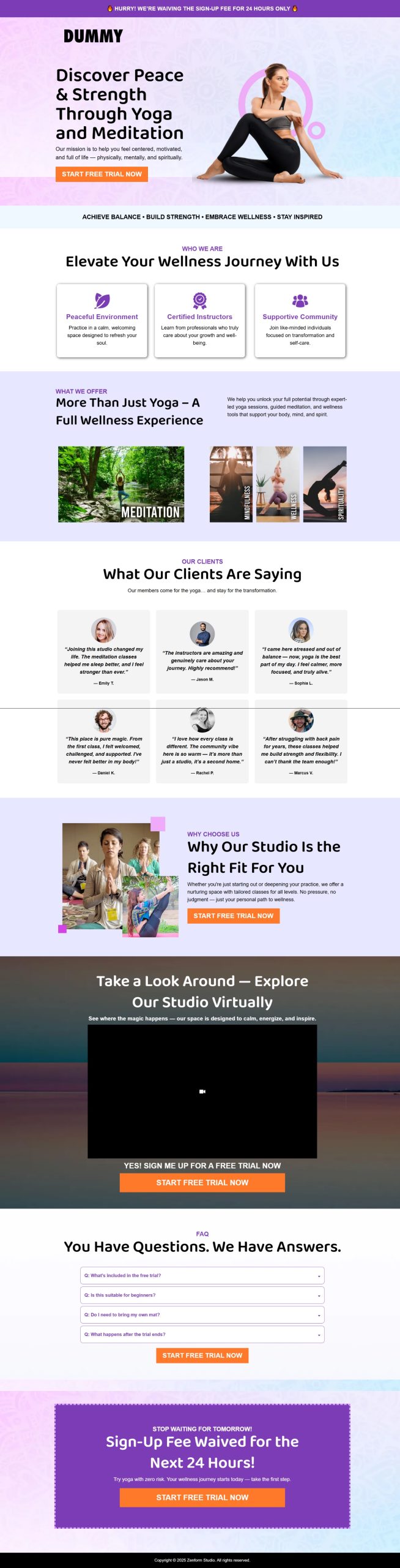 This high-converting Yoga landing page is designed to inspire visitors and attract more sign-ups for yoga studios.